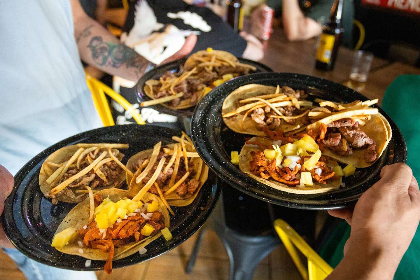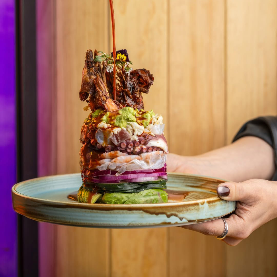 En el menú no hay pierde: cocteles, ceviches, aguachiles picosos y tostadas, todo abundante para curar el hambre, el antojo de mar o una resaca. También hay un guiño a la brasa y la leña, pero antes de llegar ahí hay que hacer escala en su taco ahogado, ya sea de marlín, camarón o jaiba, que se baña con salsa ligeramente picosa; y en la colosal torre de mariscos con atún, camarón, pulpo, callo y chicharrón de camarón, perfecta para picar con las tostadas de la casa. El extra: su coctelería, que invita a una comida larga entre amigos. Dónde: Versalles 19, Juárez. CH: $800 MXN. IG: versalles.19