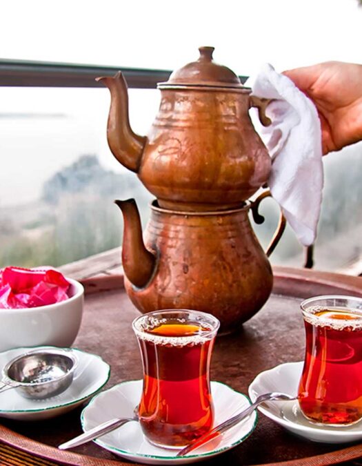 Ya le hemos platicado que el té acompaña todos los aspectos de la vida diaria en este país transcontinental: la infusión de hojas y brotes de Camellia Sinensis, la planta del té, acompaña el desayuno y los descansos de trabajo, se emplea como signo de hospitalidad, negociación y amistad, y se sirve en las celebraciones especiales turcas siempre caliente. Ahí le va un dato revelador… Un estudio de Statista demostró en 2016 que Turquía consume la mayor cantidad de té per cápita en el mundo, superando a Irlanda y el Reino Unido.