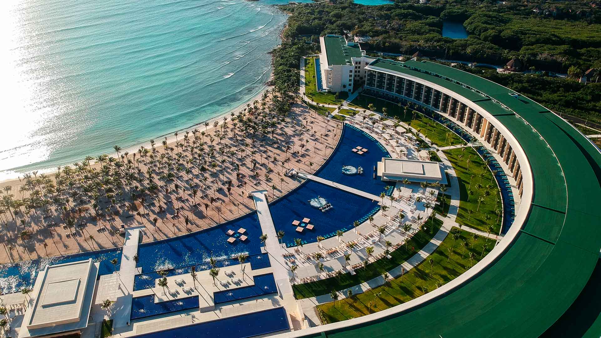 Diferentes tonos de azules en un mar quieto solo pueden anunciar una cosa: estamos en la Riviera Maya. Pero en esta ocasión, a esos colores se agrega uno más: el de un enorme cuerpo de agua, de 250 metros de longitud. Es la piscina infinita del nuevo hotel Barceló Maya Riviera, considerada la más grande del caribe mexicano. Éste es el sexto hotel del complejo Barceló Maya Grand Resort, conformado por cinco hoteles más, pero que en esta nueva propiedad, los adultos serán el objeto de todos los mimos, amenidades, entretenimiento y gastronomía, especialmente diseñados para ellos. Fotos: Charly Ramos.