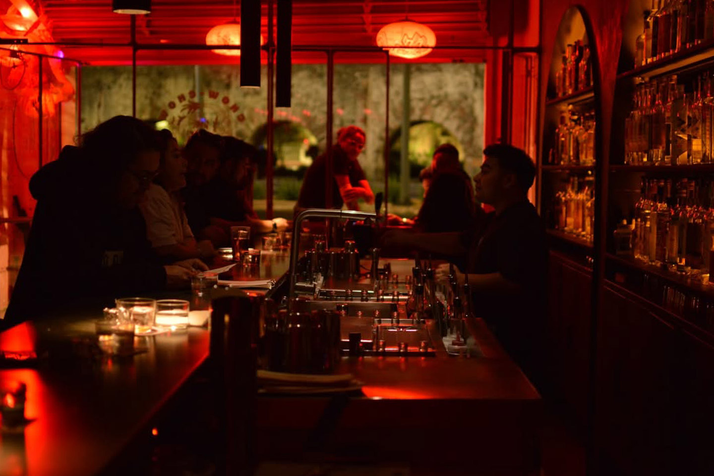 La carta y la coctelería se complementan con el espacio en este bar en la Juárez. Se ubica en plena avenida Chapultepec, y a partir de eso retoma elementos locales para crear una atmósfera especial en dos salas. La primera es pequeña, sobria y con una contrabarra que retoma los arcos del acueducto de la calle para continuar con la misma simetría visual. La segunda sala, al fondo, se vuelve lúdica y totalmente íntima: espejos, luces rojas y solo unas mesas distribuidas por todo el lugar crean el escenario perfecto para olvidarse por un momento del tiempo.