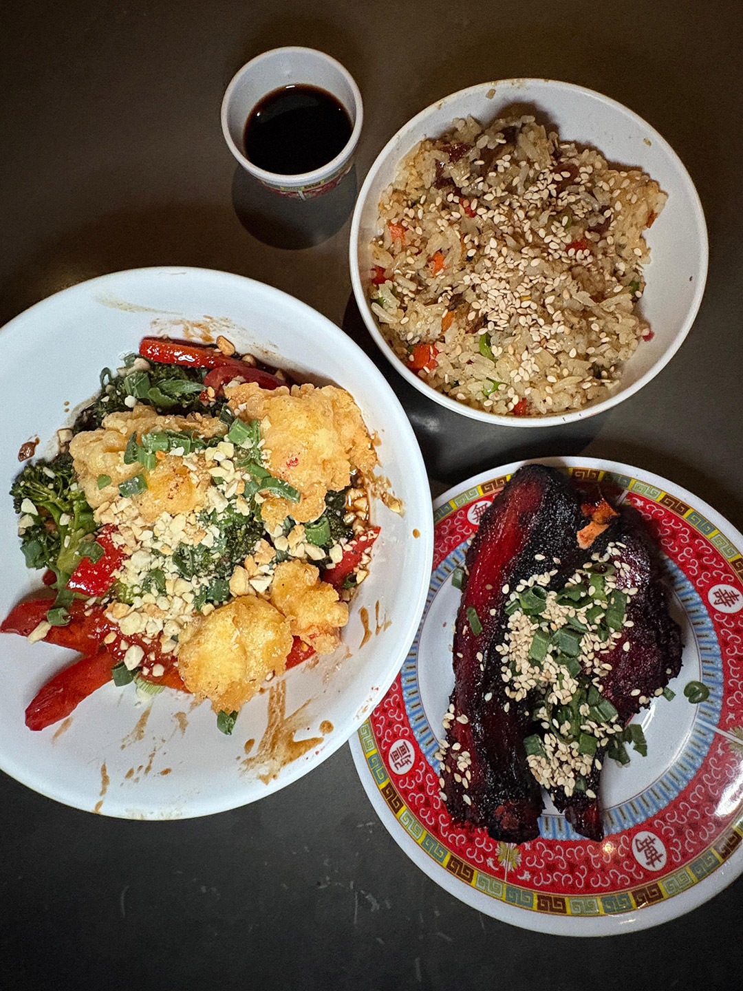 Para comer, debes incluir la ensalada de pepinos encurtidos que se acompañan con pimienta de Sichuan (la cual agrega una nota picante) y un aderezo de cacahuate. Continúa con el pollo frito con brócoli, pimiento y cacahuate; así como el arroz frito con hongo shiitake y salchicha china. Y si aún tienes antojo, las costillas char siu harán que te chupes los dedos por su cocción lenta en horno, su maceración prolongada agridulce y su dorado extra. Todos los bocados son de sabores intensos y profundos, pero pensados incluso para paladares poco acostumbrados a la gastronomía china.