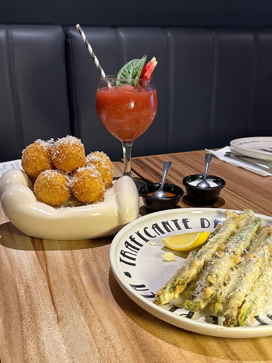 La sugerencia en tu visita a de Traficante de Pizza comienza con las entradas. Los espárragos con parmesano, al estar rebosados, rozan la glotonería en cada bocado. Para los amantes del queso, los arancinis de risotto y mozzarella son imperdibles. La clave extra para este inicio está en la coctelería de autor. Para paladares atrevidos, el martini con parmesano y tomate cherry.