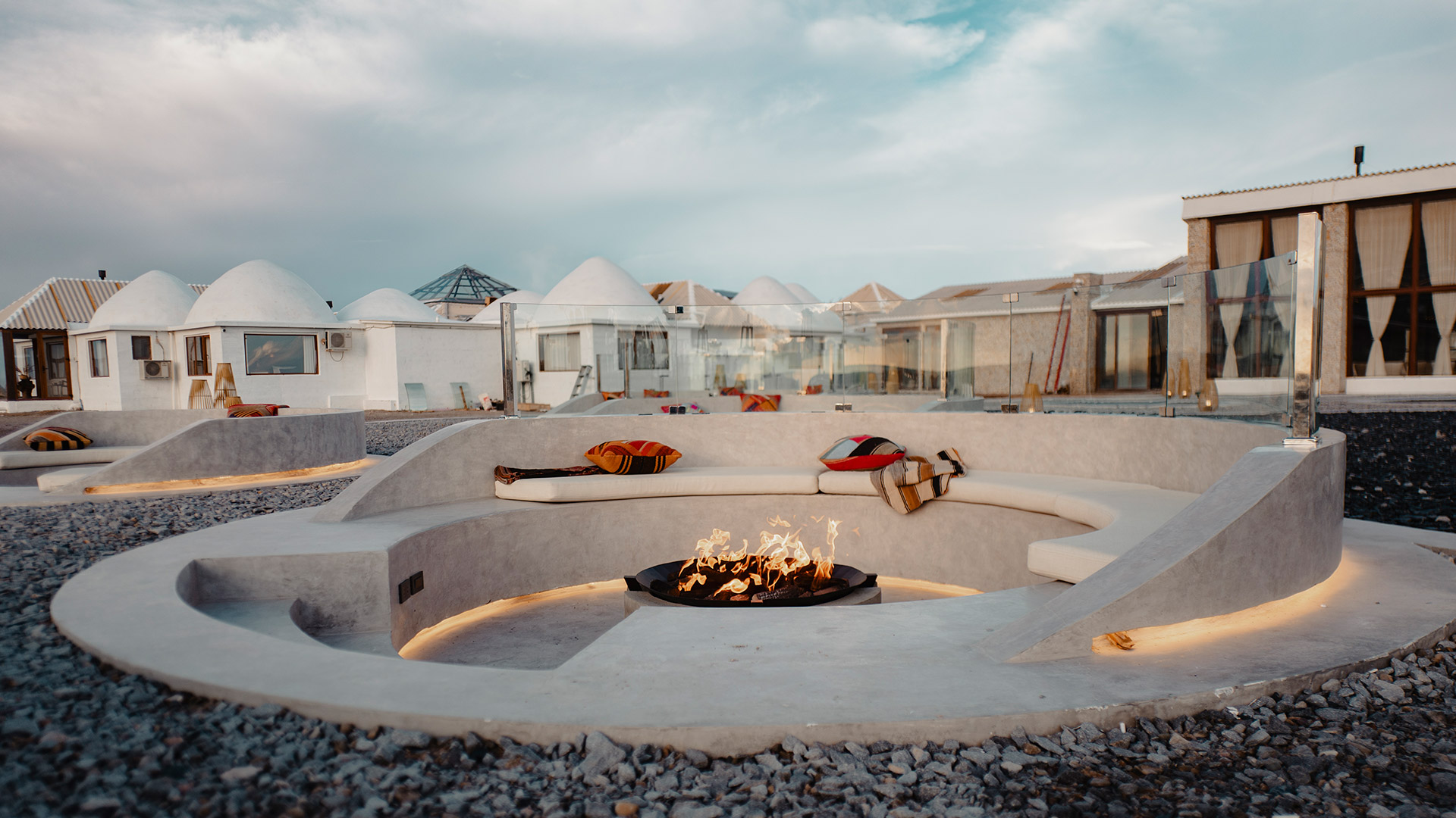 Antes de entrar a este hotel, suele vivirse uno de los momentos más memorables de la experiencia: un apthapi, tradición boliviana de origen andino que consiste en compartir alimentos de manera comunitaria. Colocados al centro, sobre aguayos (textiles tradicionales tejidos a mano), intercambiar estos productos brinda una pausa sencilla y significativa a cielo abierto, que prepara el ánimo para lo que viene: pasar la noche en un hotel que dialoga directamente con el paisaje que lo rodea.