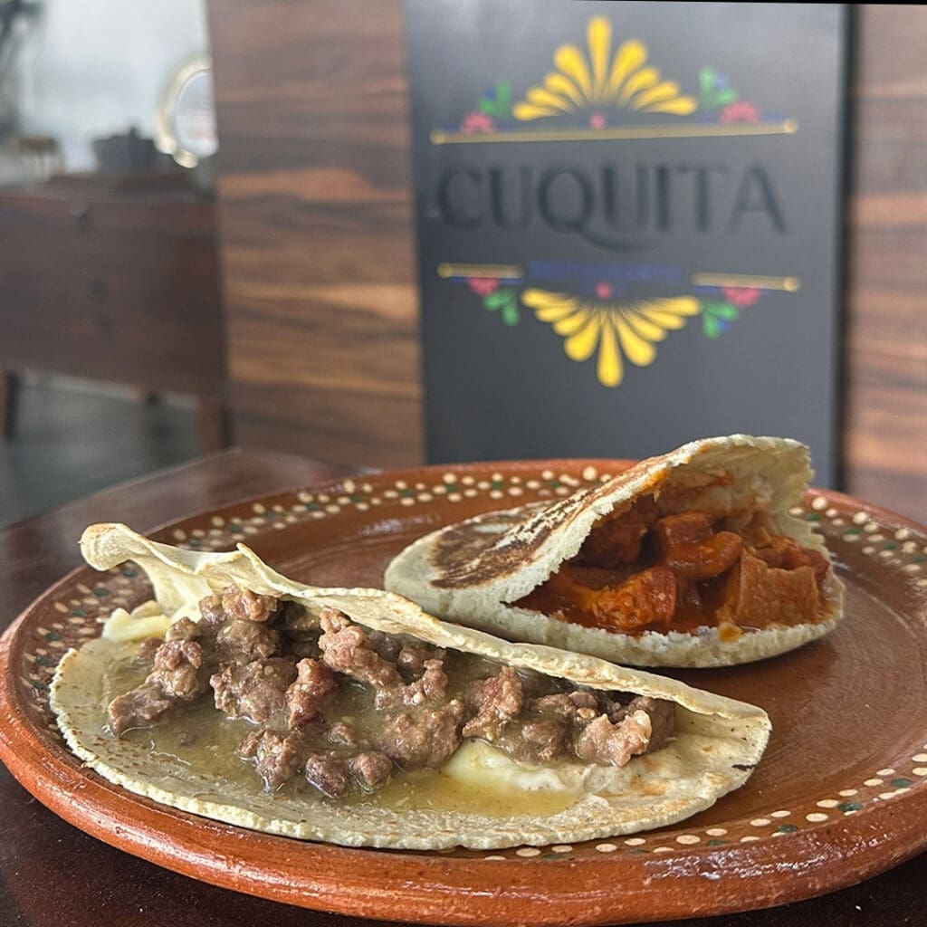 La cocinera tradicional Cuquita López Ayala comparte su sazón construida a lo largo de casi 60 años. Por las mañanas convida de sus guisos, como la maciza de cerdo en chile guajillo o la cecina con limón. Cheque promedio: $120 MXN. IG: restaurantecuquita